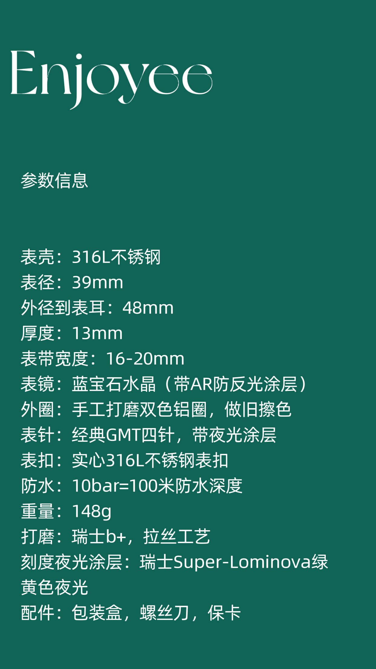 成为第一个“ENJOYEE可乐圈复古手工做旧机械腕表gmt两地时” 的评价者
