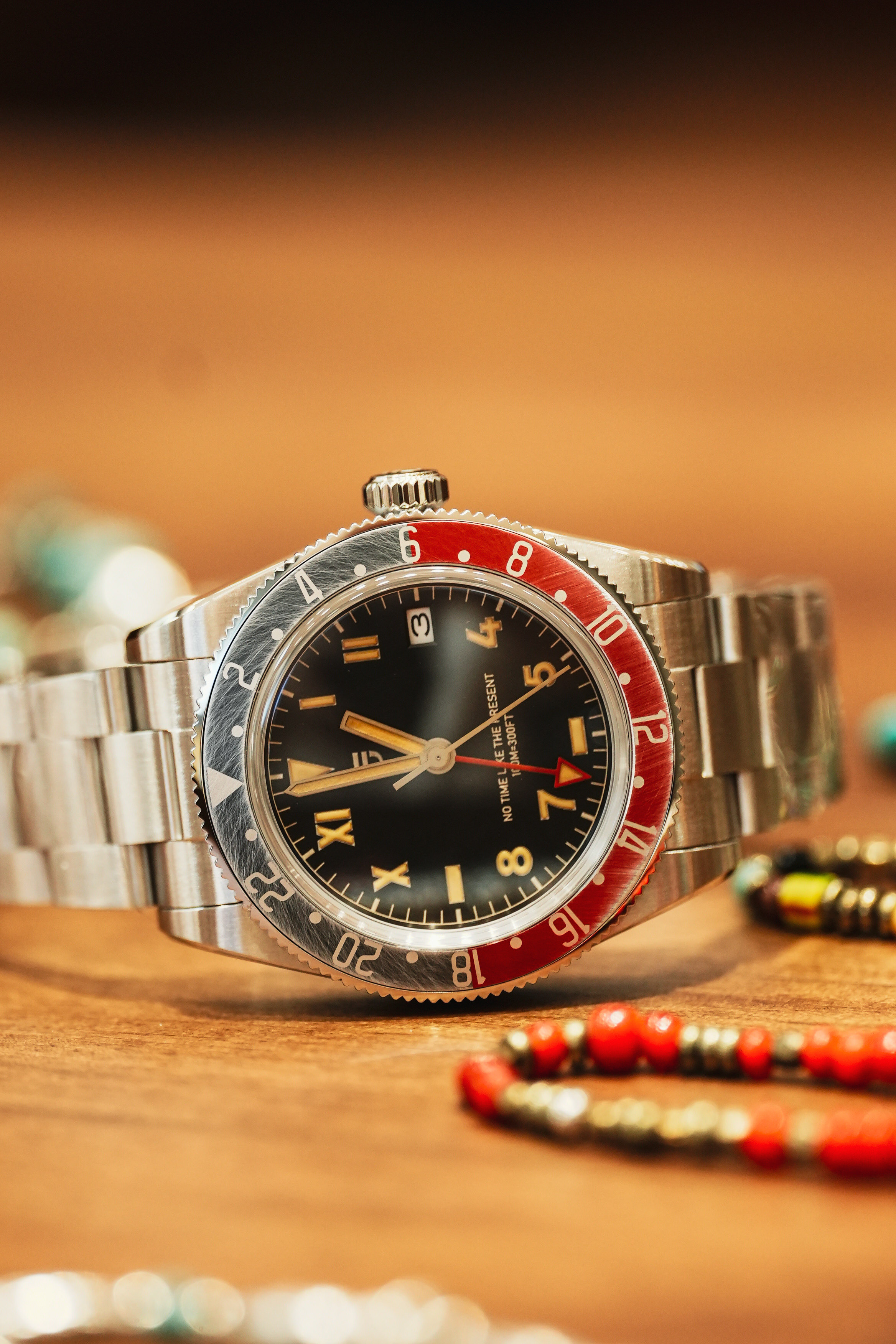 ENJOYEE百事圈gmt自动机械腕表手工做旧两地时腕表