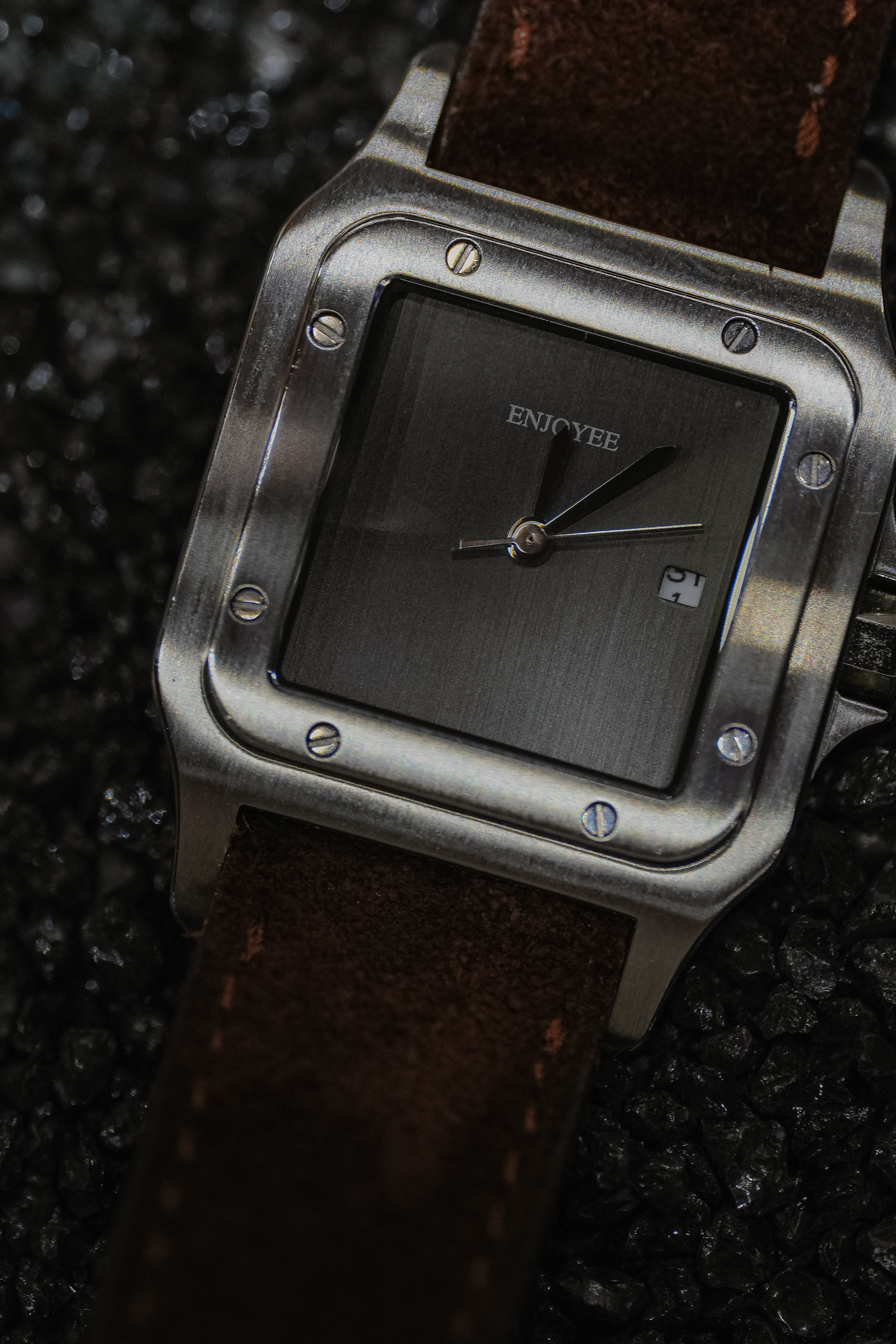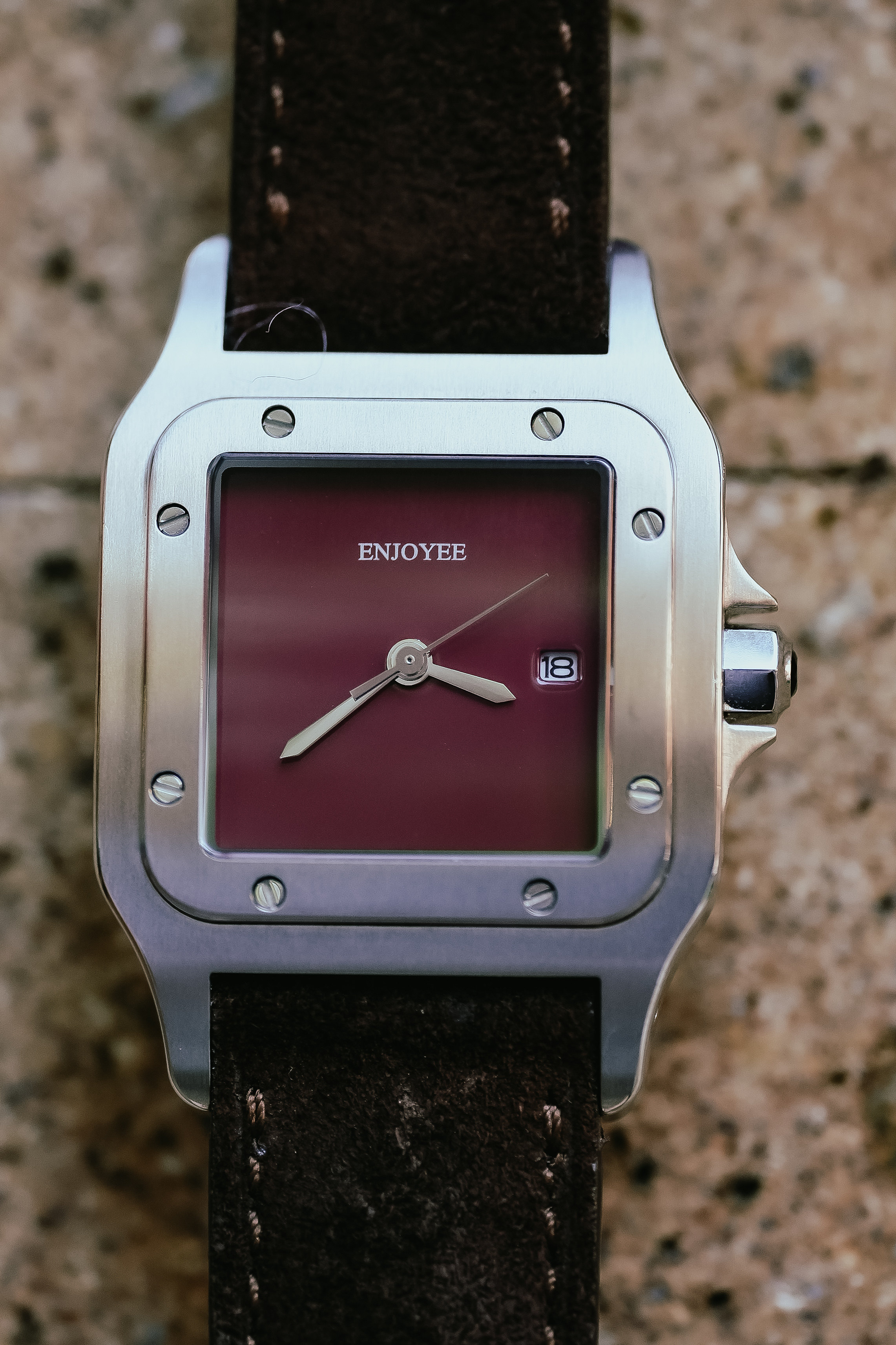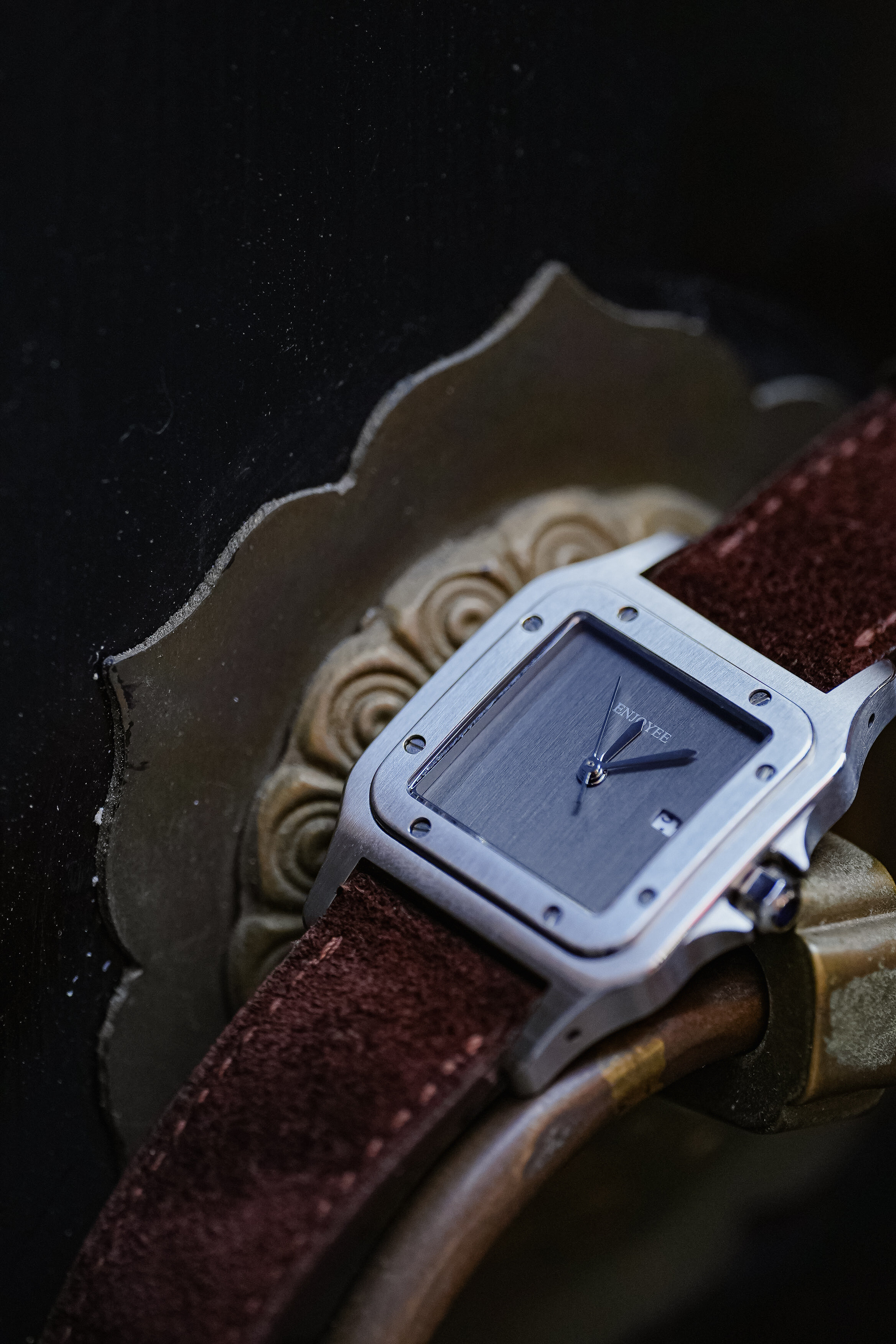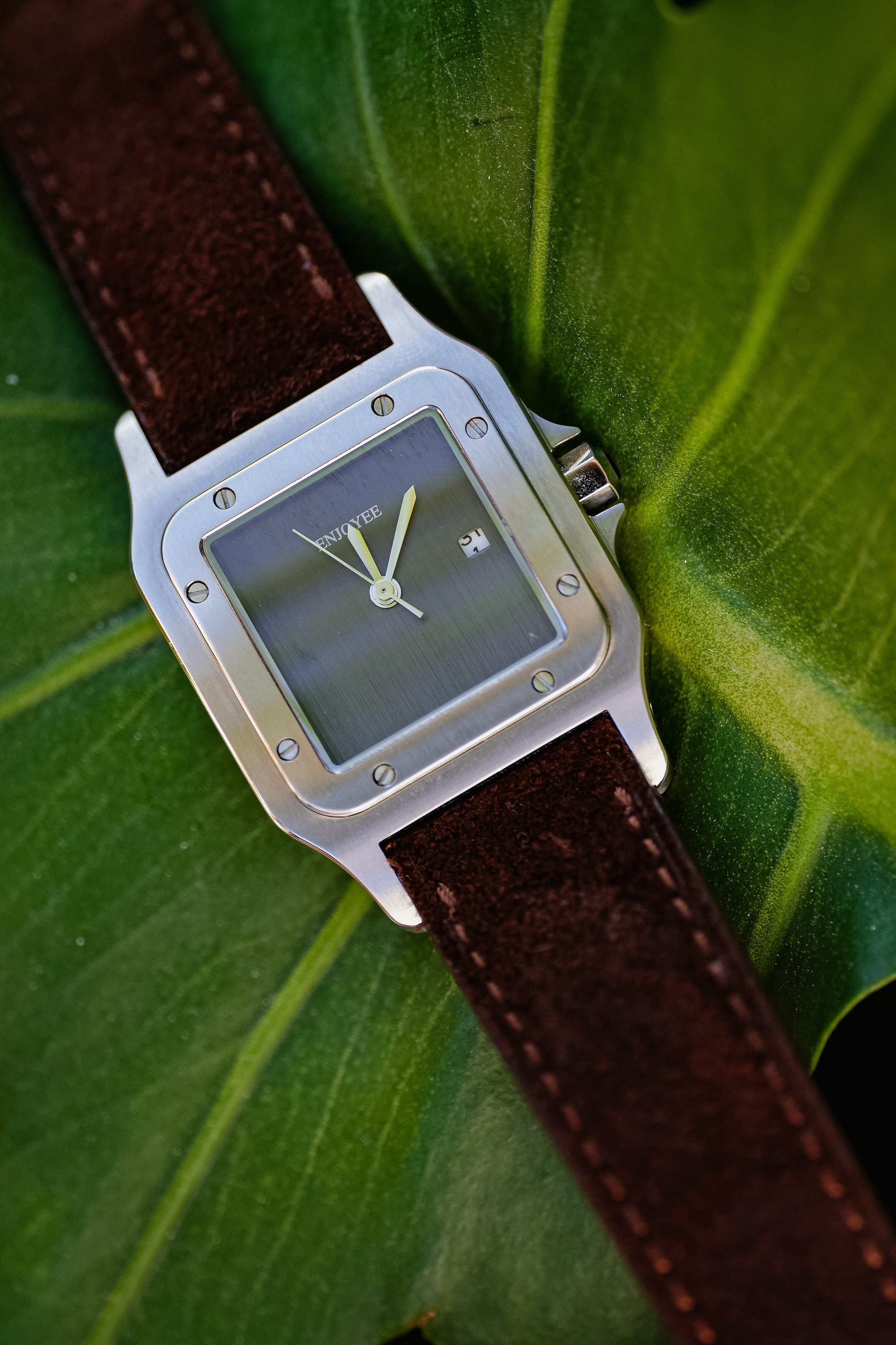 / ENJOYEE精致小方表复古意大利牛皮超薄石英表
