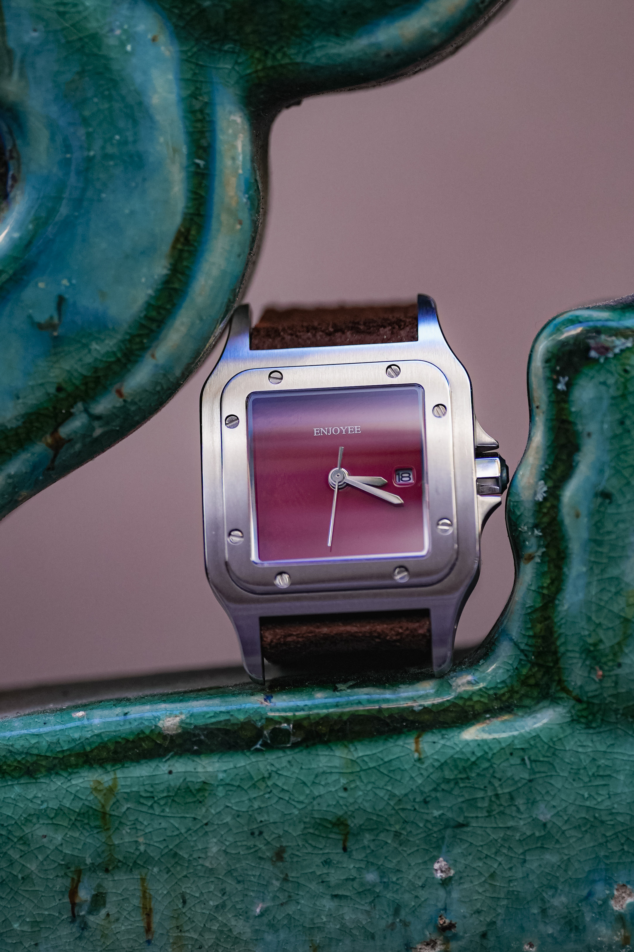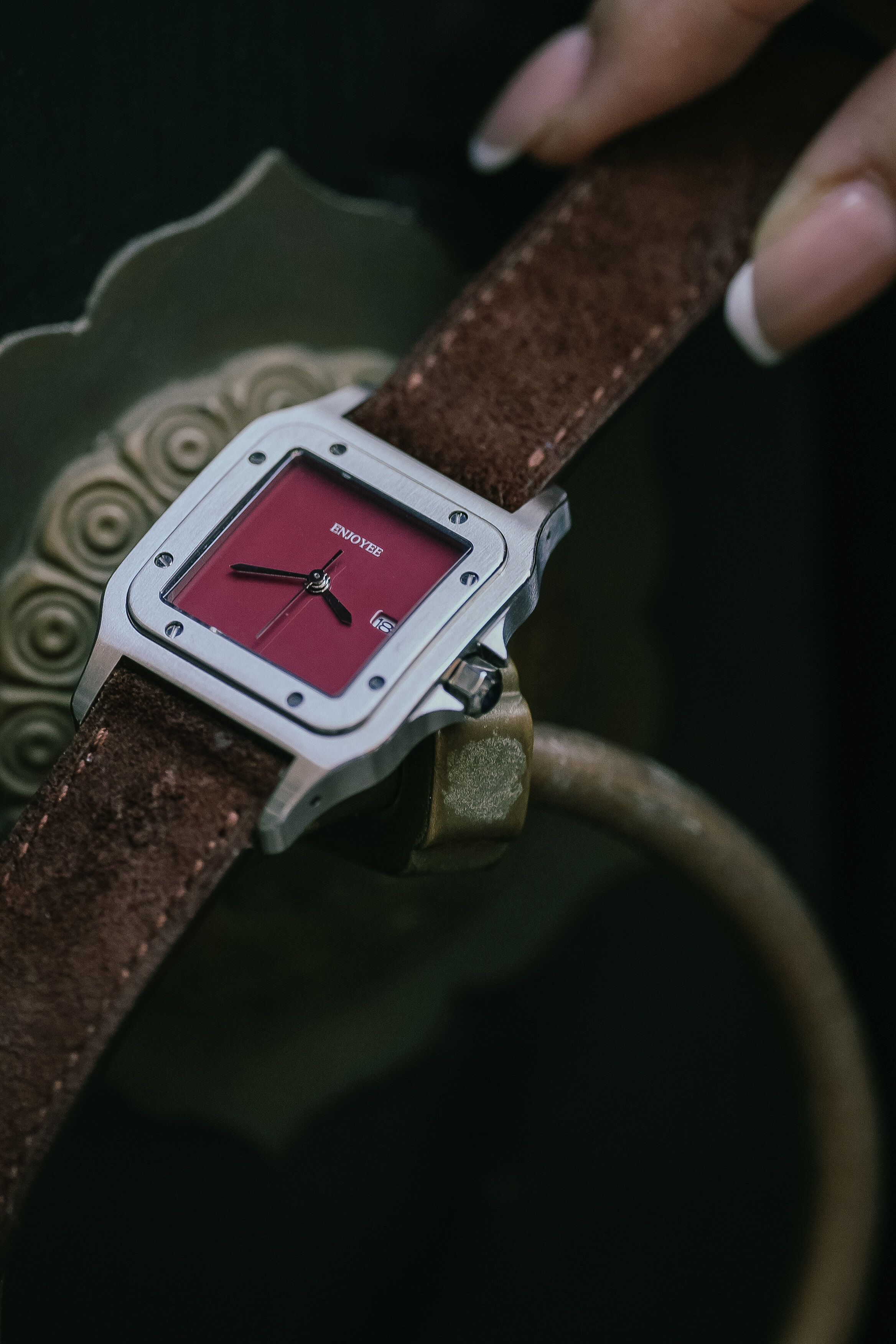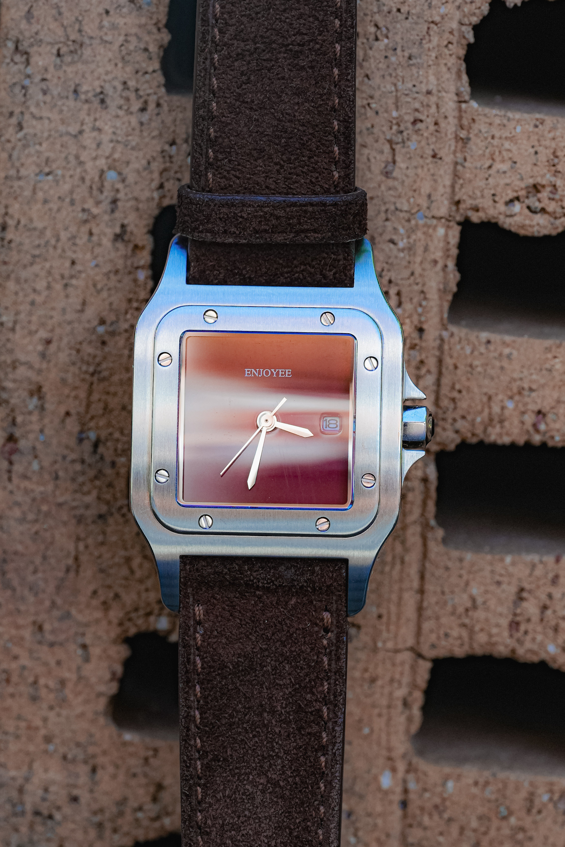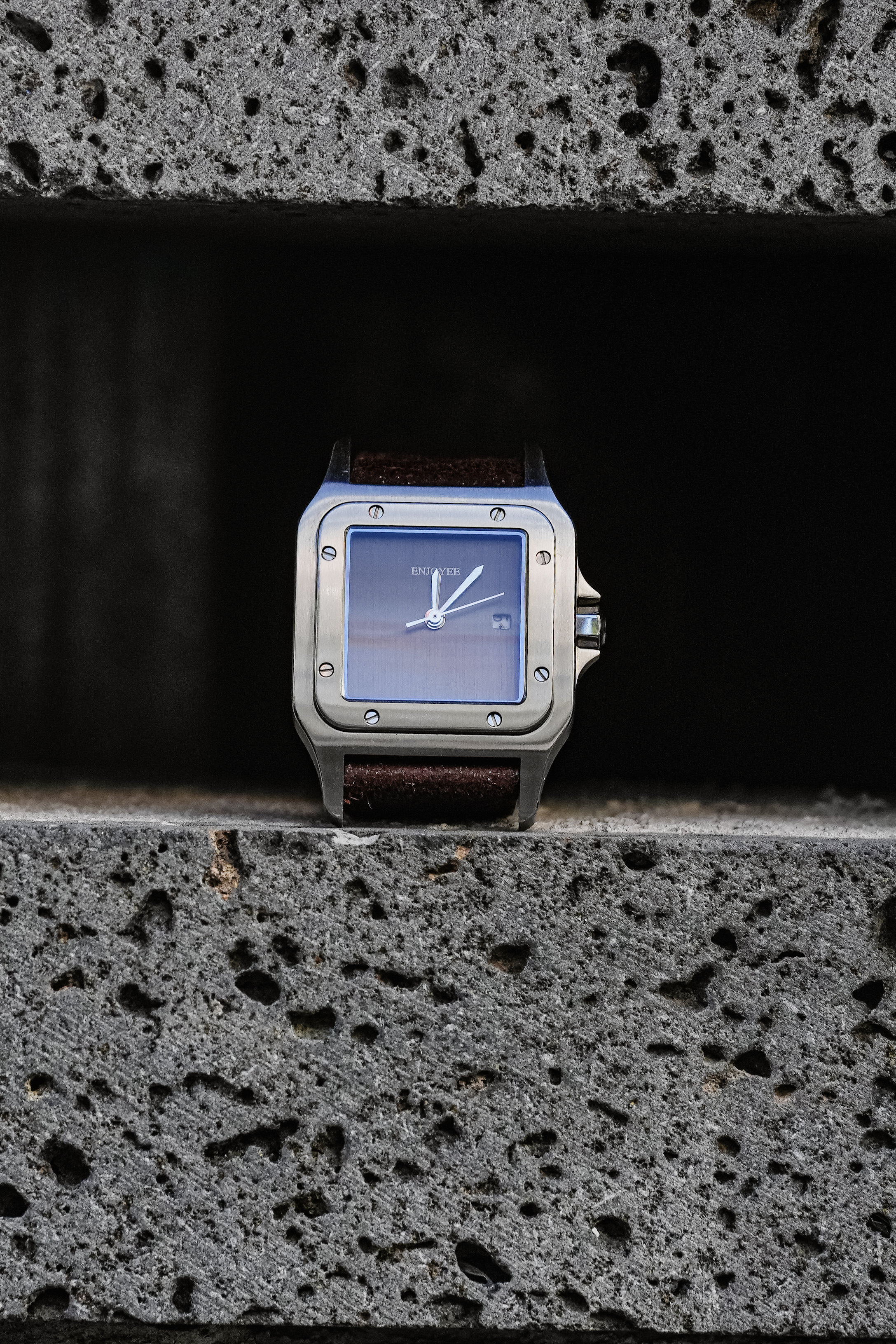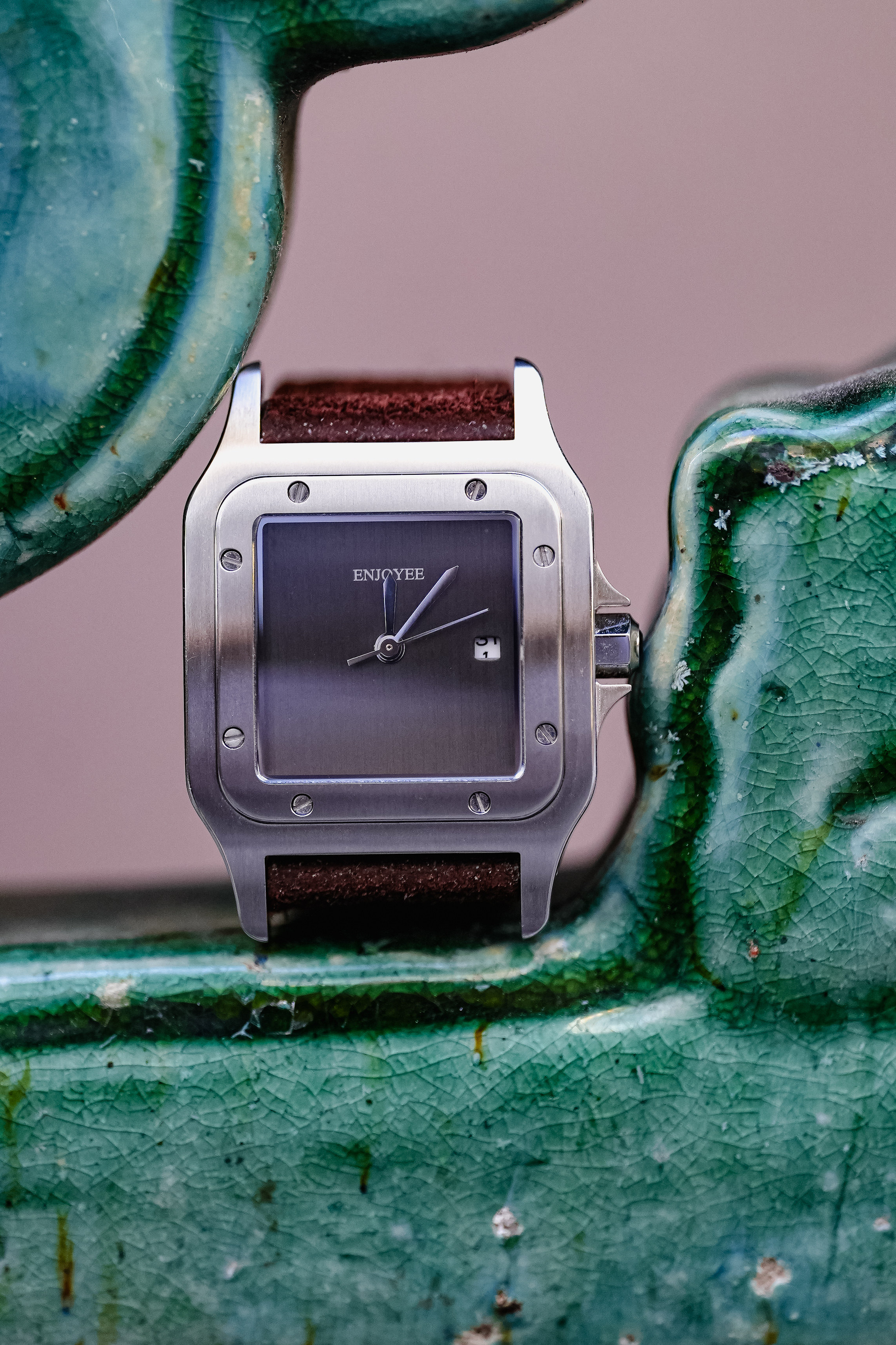 / ENJOYEE精致小方表复古意大利牛皮超薄石英表