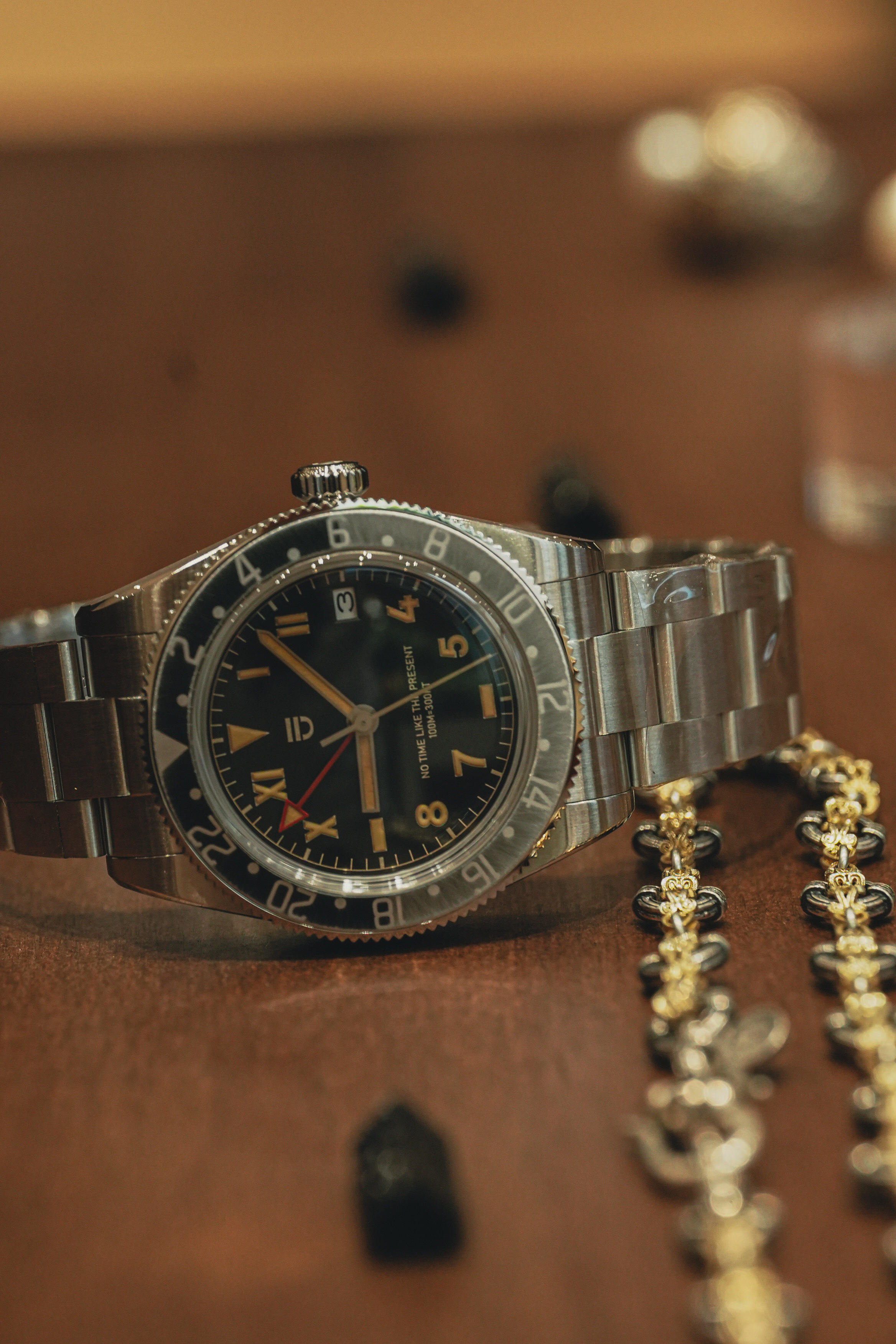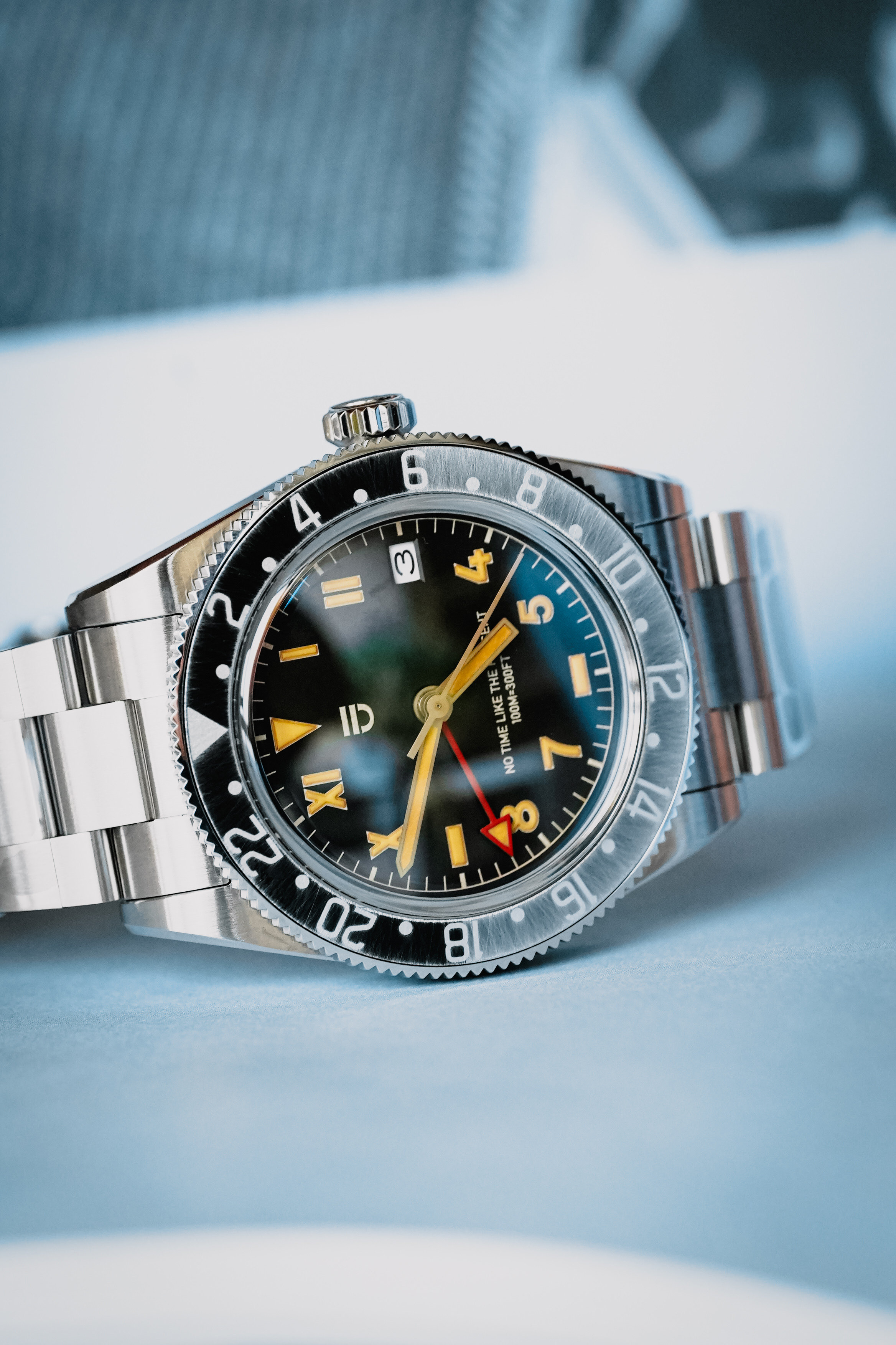 ENJOYEE百事圈gmt自动机械腕表手工做旧两地时腕表