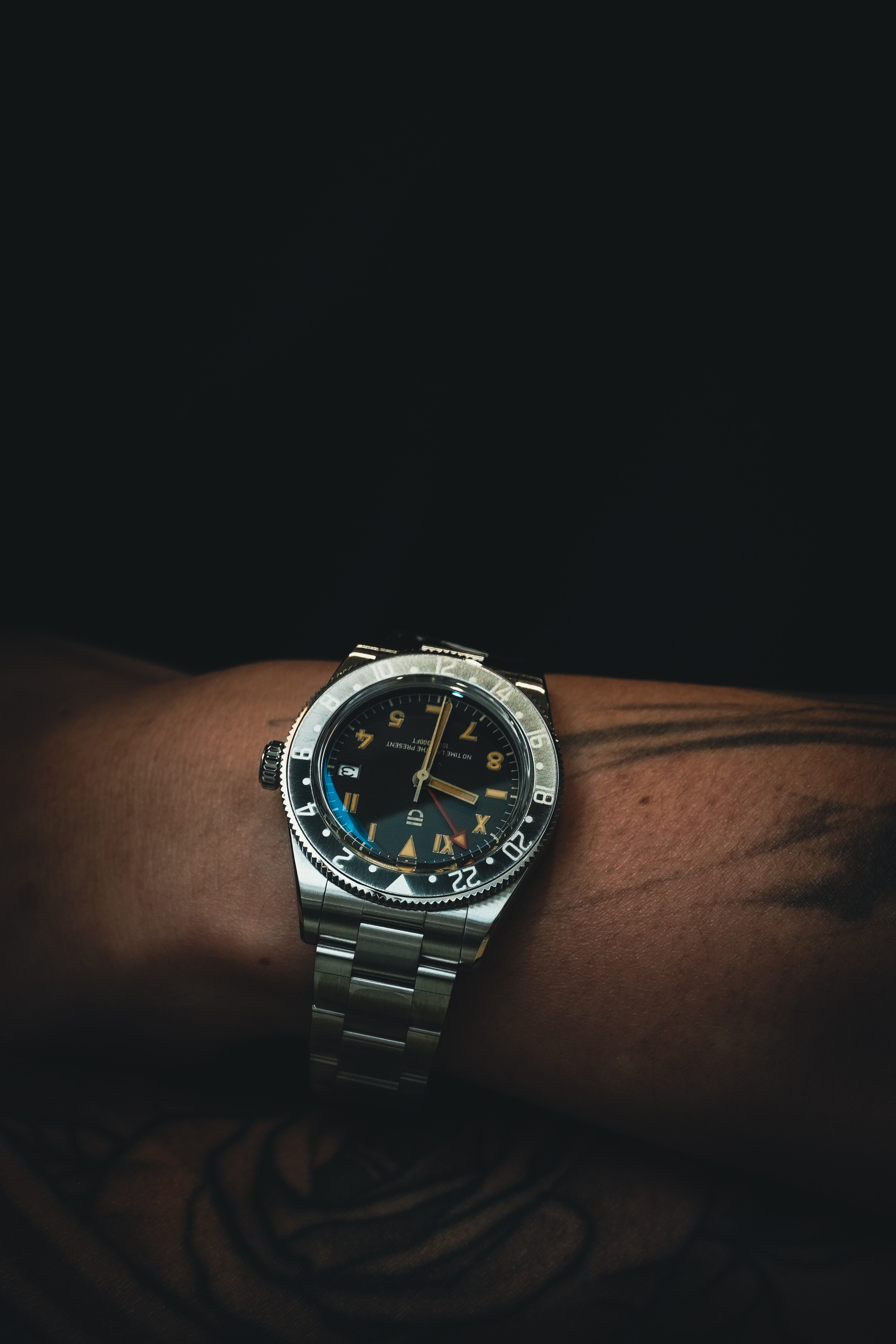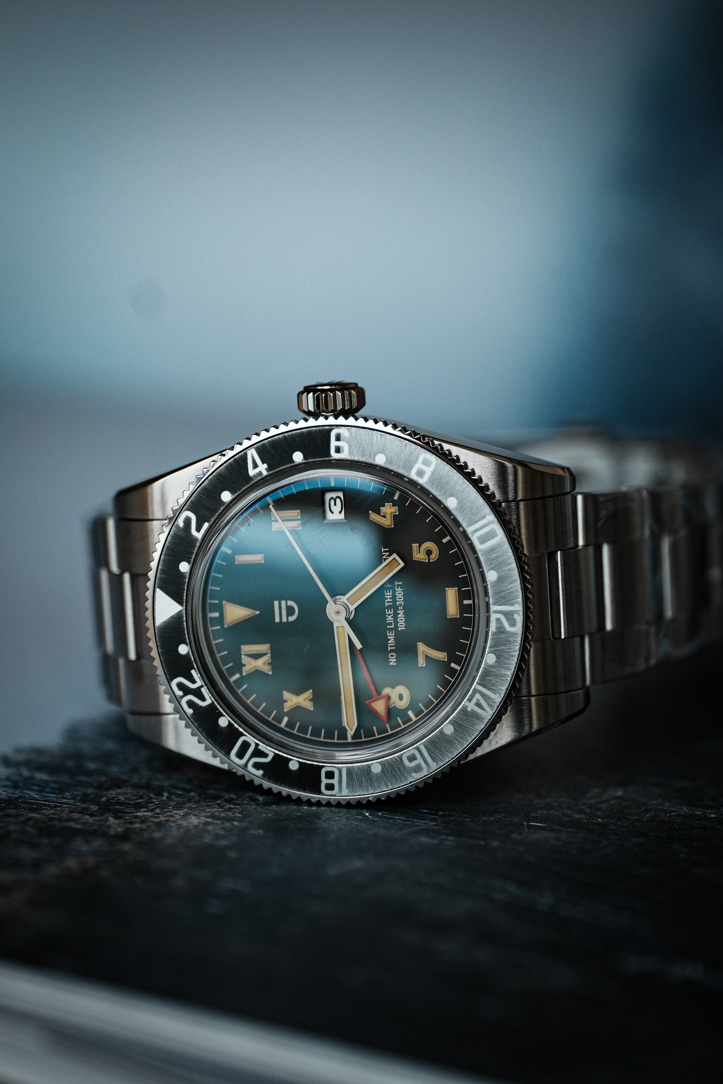 ENJOYEE黑篮国米圈白面gmt手工做旧自动机械腕表
